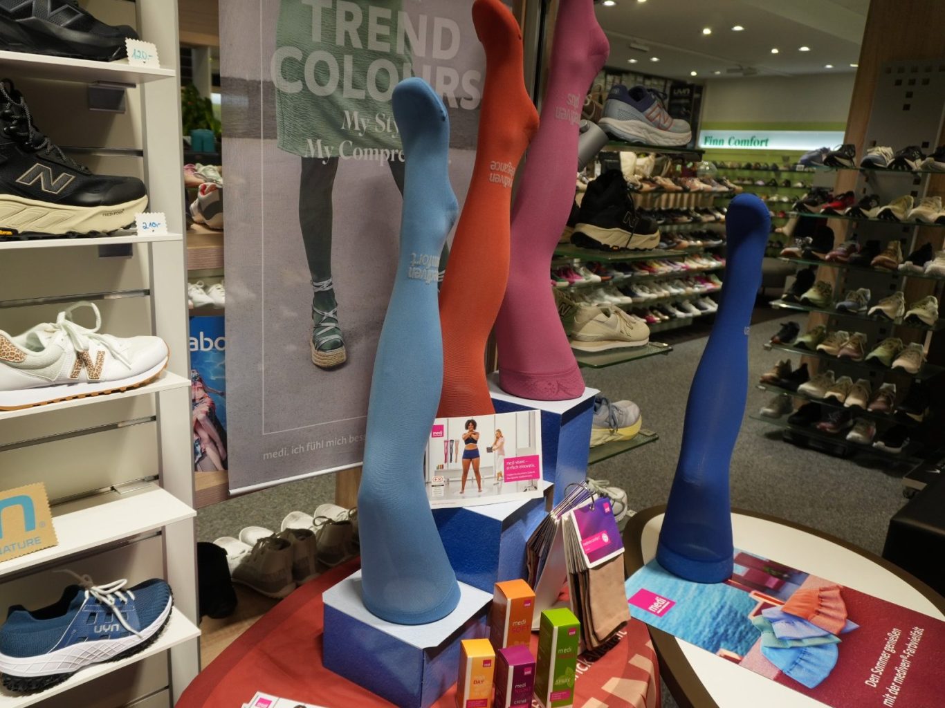 Dank einer großen Auswahl an Farben, Materialien und Kompressionsklassen finden wir gemeinsam die Lösung, die perfekt zu Ihnen passt – ob für Beruf, Alltag, Reisen oder Sport.